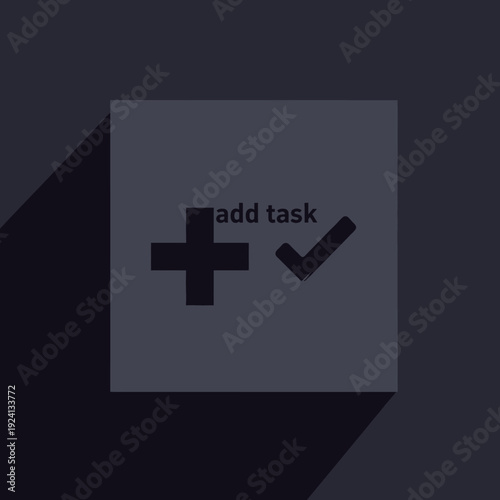 © rara, Obraz premium Simple graphic icon representing adding a task with a plus sign and checkmark.