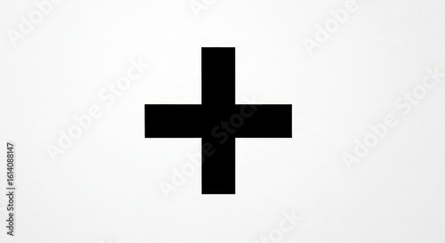 © Gries, Obraz premium Simple graphic representation of a black cross on a plain white textured backdrop