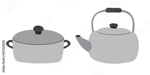 Obraz premium Simple Gray Cooking Pot and Kettle Illustration. Vector design elements.