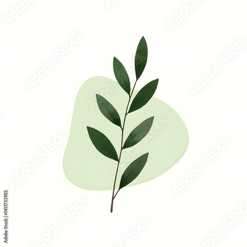 Fototapeta premium Simple Green Leaf Branch Botanical Art on Light Background