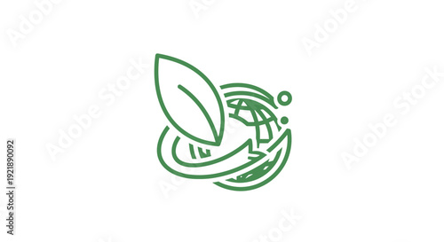 Obraz premium Simple green line art logo with leaf and globe elements.