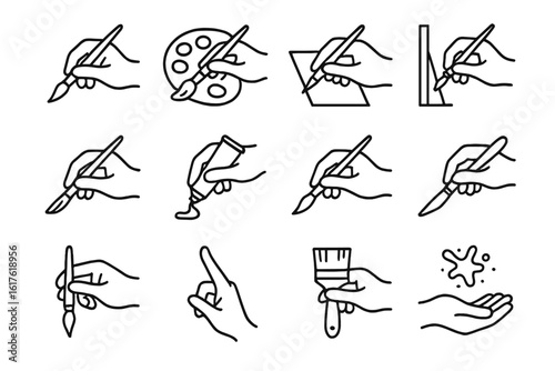 Fototapeta premium Simple hand drawing icons with brush and paint palette on dark background
