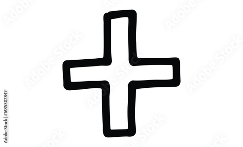 © Mr. Stocker, Fototapeta premium Simple hand-drawn black plus sign icon. Vector retro hand drawn illustration