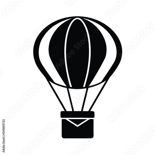 Fototapeta premium Simple Hot Air Balloon Round Envelope And Basket Outline Vector Illustration