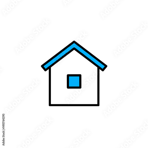 Obraz premium Simple house icon with blue roof and window on a white background