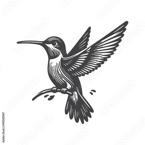 Obraz premium Simple Hummingbird Flying Vector Icon Design – Vintage Retro Logo & Illustration