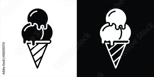 © Sunnn, Obraz premium Simple ice cream cone icon with three scoops.