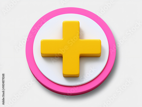 © Sung Hwan Kim, Obraz premium simple icon of a bright yellow plus sign inside a circle, representing addition and positivity