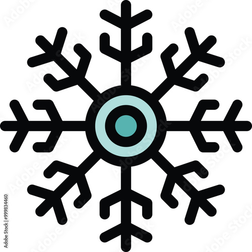 Fototapeta premium Simple icon of a snowflake with a round center, bringing winter cheer