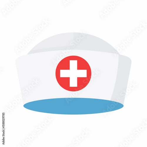 © rifqi, Fototapeta premium Simple illustration of a white nurse's cap with a red cross symbol, isolated.