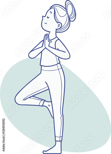 Obraz premium Simple Illustration of a young girl Practicing Yoga in Tree Pose