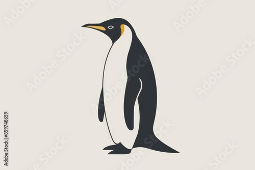 Fototapeta premium Simple illustration of an emperor penguin standing in profile, facing left,...