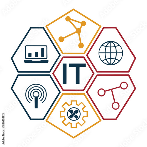 © Bishwarup, Fototapeta premium Simple IT Acronym in Geometric Hexagon Vector Icon