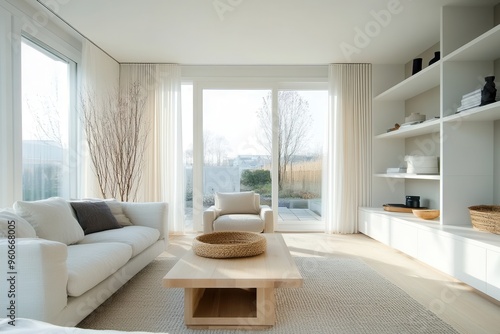 Fototapeta premium simple, light-filled living room with soft pastel accents and an airy feel