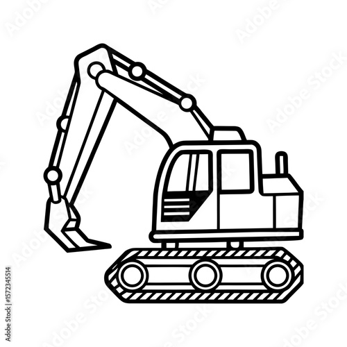 © MDJAHIDUL, Naklejka premium Simple line art excavator machine isolated on white background