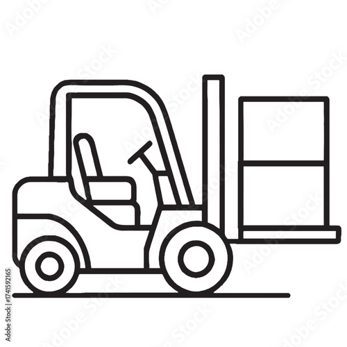 © Sefat, Fototapeta premium Simple line art icon of a forklift truck lifting a box