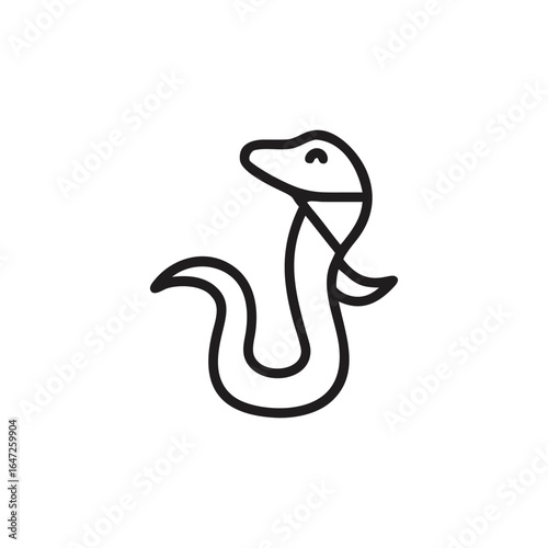 Fototapeta premium Simple Line Art Icon of a Stylized Snake on a White Background serpent reptile