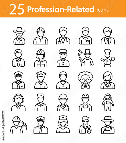 © trandoo, Fototapeta premium Simple Line Art Icons Representing Various Professions
