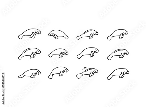 Obraz premium Simple Line Art Manatee Collection.