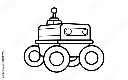 © 4Max, Obraz premium Simple line art of a classic toy robot on wheels