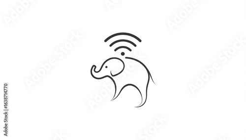 © Jihan, Fototapeta premium Simple line art of an elephant with wifi symbol.