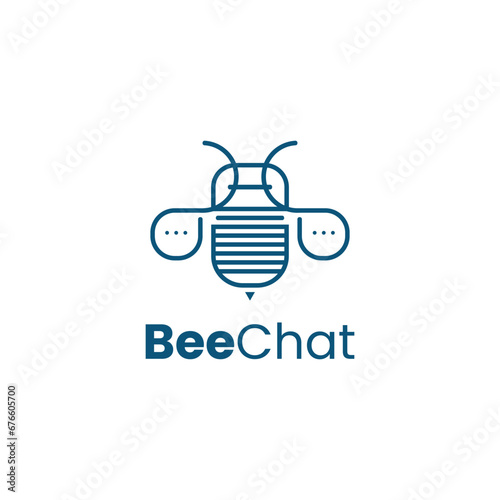Fototapeta premium simple line bee chat logo