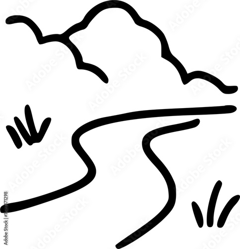 © RonaldBin, Obraz premium Simple line drawing depicting a winding road or river, grass, and a stylized mountain or cloud formation.