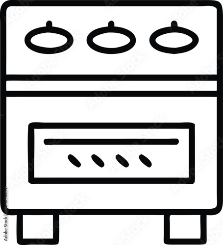 © Mahmud, Fototapeta premium Simple line drawing illustration of stove with oven and three knobs