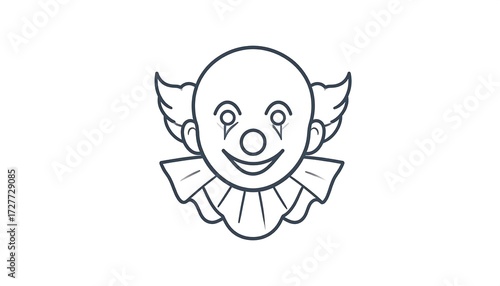 © Langka, Fototapeta premium Simple line drawing of a clown face with ruffled collar on a plain white background