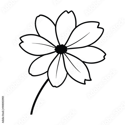 Naklejka premium Simple Line Drawing of a Cosmos Flower