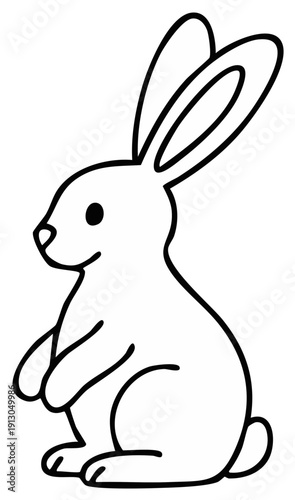 Obraz premium Simple Line Drawing of a Cute Rabbit Sitting Upright with Long Ears