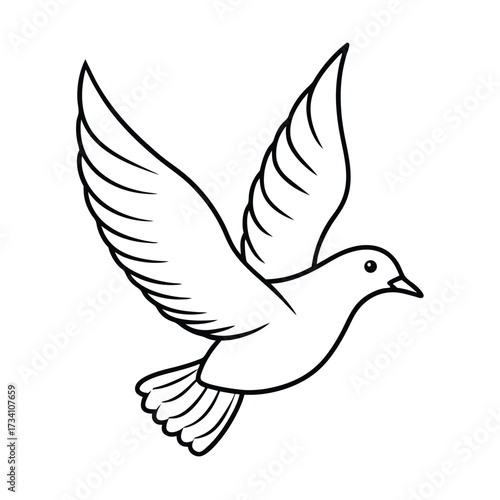 Obraz premium Simple line drawing of a dove in flight with wings spread wide