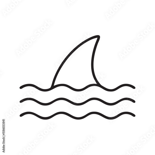 Obraz premium Simple Line Drawing of a Shark Fin Emerging from the Water with Three Waves...