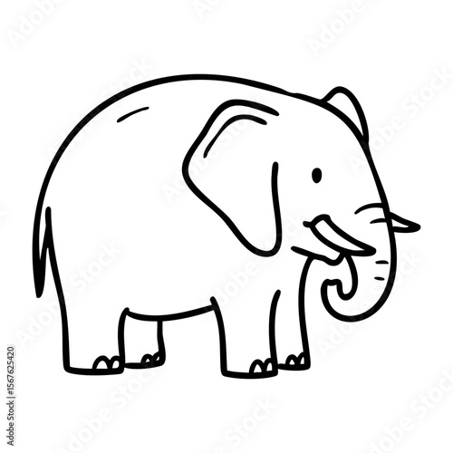 © BraveSpirit, Fototapeta premium Simple line drawing of a smiling elephant. Vector hand-drawn doodle illustration
