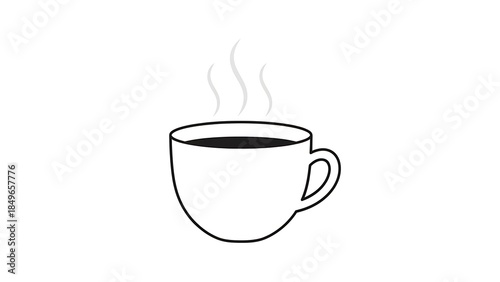 Obraz premium Simple line drawing of a steaming hot coffee cup on a plain white background...