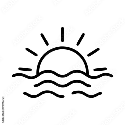 © Lexi, Obraz premium Simple line drawing of a sun rising above ocean waves