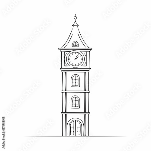 Naklejka premium Simple line drawing of a tall clock tower with a detailed clock face.