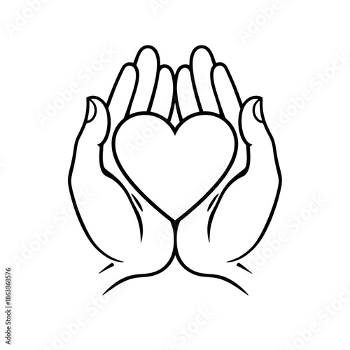 Obraz premium Simple line drawing of hands holding a heart symbol.