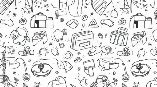 © Oliver, Fototapeta premium Simple line drawings of everyday objects wallpaper