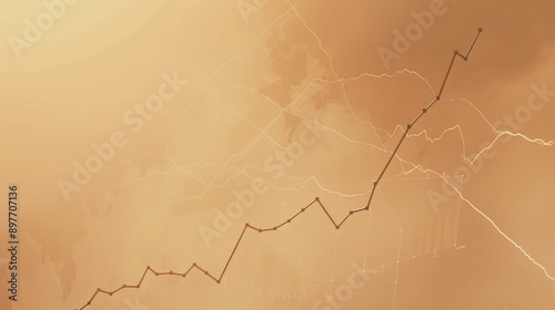 Naklejka premium Simple line graph on light brown background, gradual increase, market growth trend, clean design