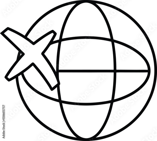 © MstAfia, Naklejka premium Simple line icon of a globe with a circling airplane isolated on transparent background