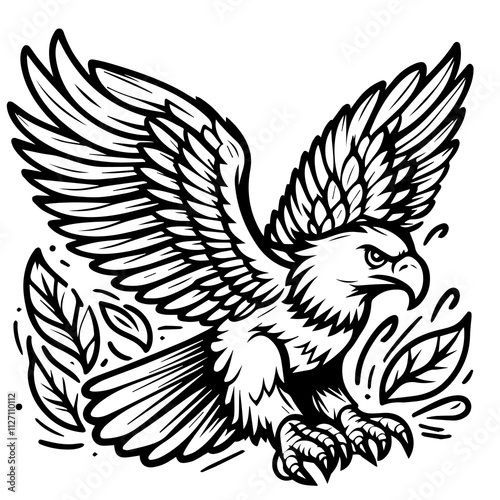 Obraz premium Simple Line Illustration of an Eagle with Open Space for Coloring, Featuring...