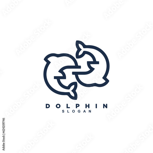 © restu, Obraz premium Simple linear two dolphin logo design vector