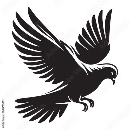 © Vectorhub, Fototapeta premium Simple Lines Dove silhouette in flight – Dove illustration – Minimalist Dove vector – Bird silhouette – Bird vector