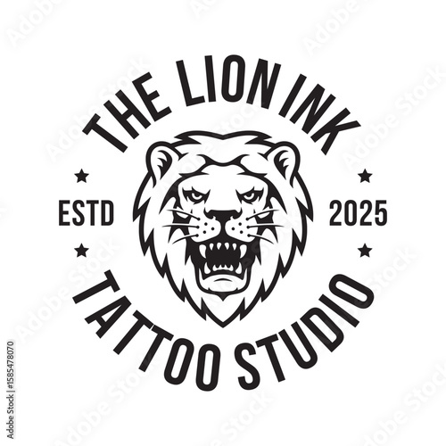 © chonkz, Obraz premium Simple lion head logo concept. Angry lion head design illustration, vector.