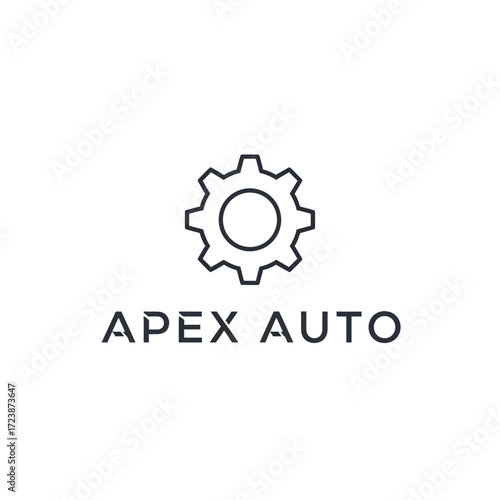 © islak, Fototapeta premium Simple logo featuring a gear icon above the words "APEX AUTO" in a clean, modern font.