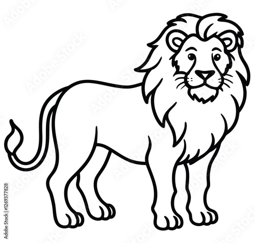 Fototapeta premium Simple majestic royal king ferocious angry wild lion full body, face, mascot...