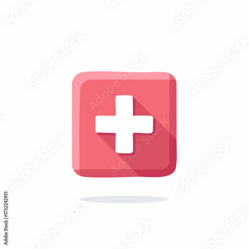 © Oleg, Obraz premium Simple medical cross icon inside a rounded square with a subtle shadow effect