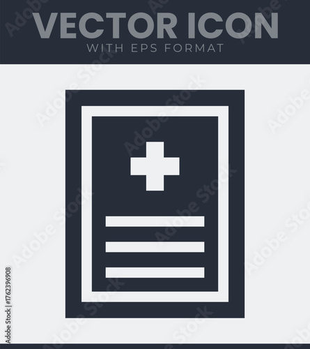 Obraz premium Simple medical document with plus sign icon vector art