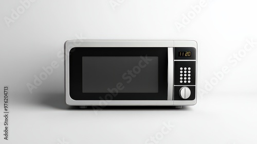 Fototapeta premium Simple microwave oven with digital display and control panel, reflecting minimalistic design and modern kitchen technology.